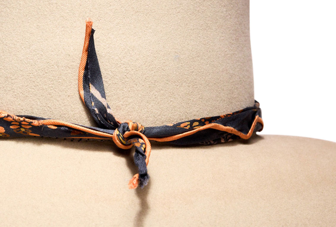 The edges are softly finished for easy tying, allowing it to move naturally with the shape of the hat.