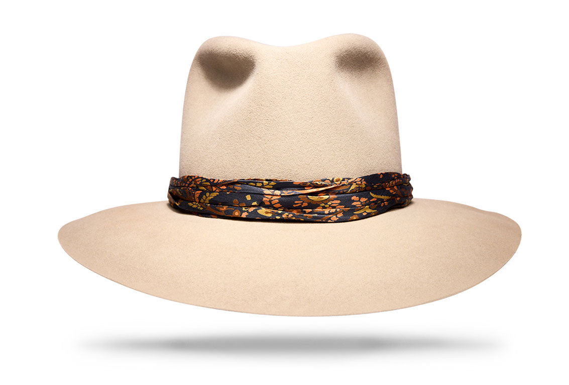 Handcrafted from our W&W silk pocket squares, each interchangeable band reinterprets the print as a refined wrap for the crown. Designed to bring contrast, texture, and individuality — the kind of detail that transforms a hat’s entire mood.
